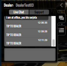 Bu simgeler sohbet ve bildirim alanına erişmenizi sağlar. Sohbet alanı iki bölüme ayrılmıştır, masadaki diğer oyuncularla yazışmanıza imkan verir (Canlı sohbet). “Destek” sohbeti Müşteri Hizmetleriyle iletişime geçmenize imkan tanır. Bildirim alanı Müşteri Hizmetleri tarafından kullanıcı ile pazarlama tanıtımlarını paylaşmak amacıyla kullanılır. |